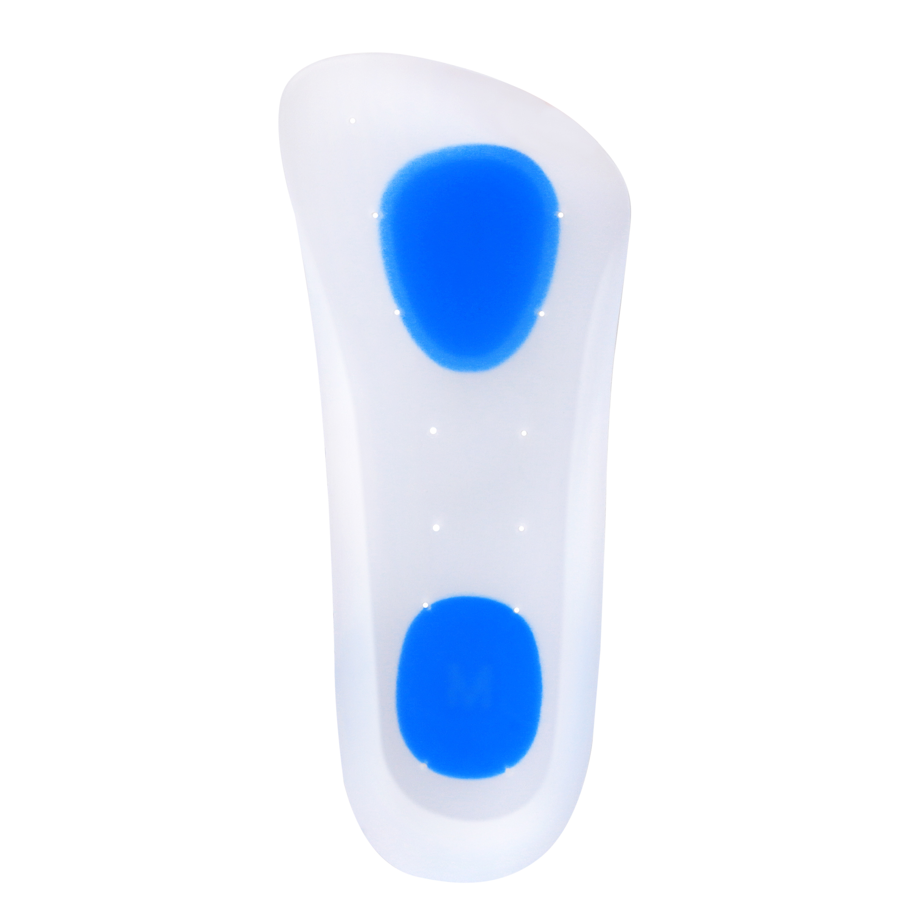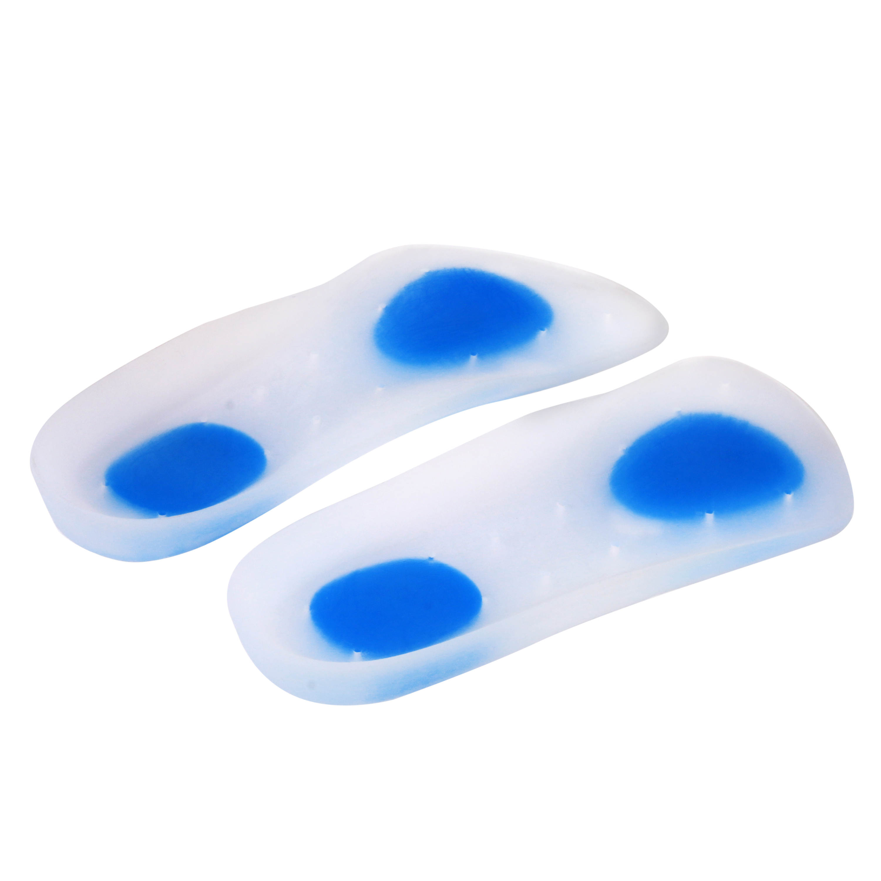 Relief Silicone Arch Support are 3/4 length insoles that are made with a non-compressible medical grade silicone with high shear strength & high cushioning coefficient for low to neutral arch type. The dual durometer formulation silicone absorbs shock under high pressure areas while supporting surrounding tissue providing unparalleled shock absorption and comfort for the heel, arch and forefoot. The Relief Silicone Arch Support is anatomically designed to provide support to the arch and heel. Multiple vents enhance air circulation for better comfort. The softer density blue colored silicone areas provide additional cushioning to sensitive areas. The thicker design works well in active wear shoes, running shoes as well as formal shoes.